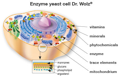 They remain biologically active but do not proliferate in the body. The Dr. Wolz® enzyme yeast cells are extremely thin walled and can therefore be perfectly exploited by the human organism.