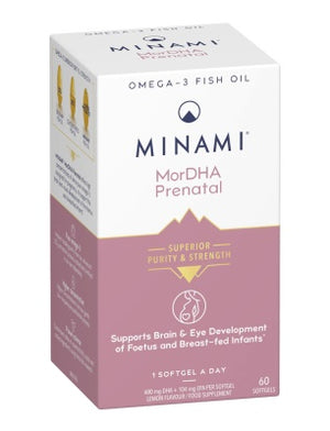 Our prenatal omega-3 is specially formulated with the right balance of EPA and DHA to support you and your baby during pregnancy. MINAMI MorDHA Prenatal helps with eye and brain development for your baby in the womb, and these benefits can carry on after they are born through breastfeeding.