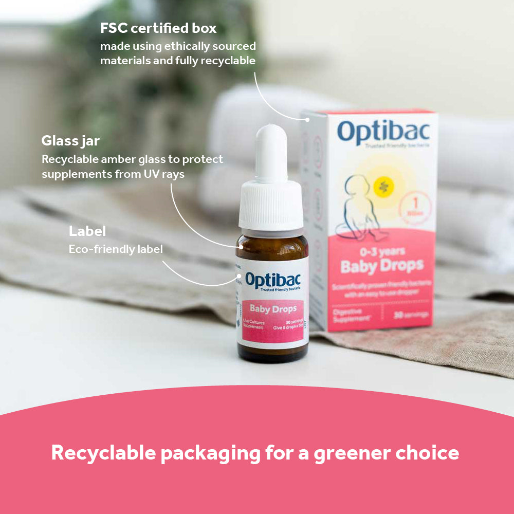 Flavourless liquid drops formula Easy-to-use baby friendly bacteria drops; can be administered directly into baby’s mouth*, on a spoon or mixed into cool milk or food