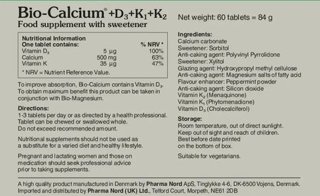 • Each tablet contains 500mg of calcium, 5mcg vitamin D3 and 35mcg vitamin K1 and K2 blend