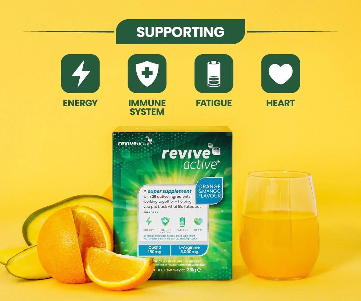 Revive Active is a comprehensive super supplement designed to support your overall health, energy, immune function, and vitality in one convenient daily sachet. Formulated with a powerful blend of 26 active ingredients — including key vitamins, minerals, amino acids and antioxidants — Revive Active helps you feel more energised, supports your immune system, and helps reduce everyday tiredness and fatigue.