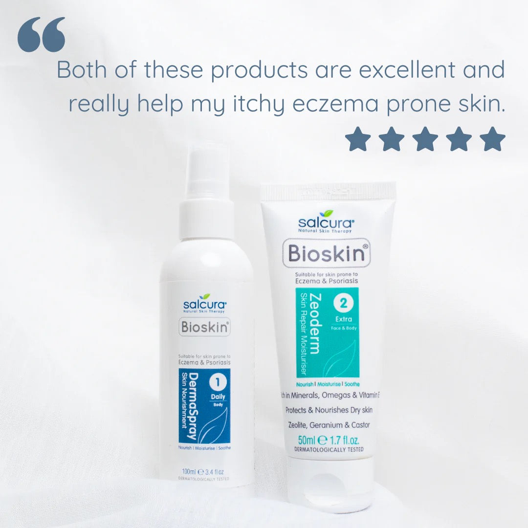 Experience our unique & award-winning 2-Step Spray-Cream Therapy System and try our Bioskin DermaSpray Intensive & Zeoderm Skin Repair Moisturiser now with our Bioskin Duo Pack!