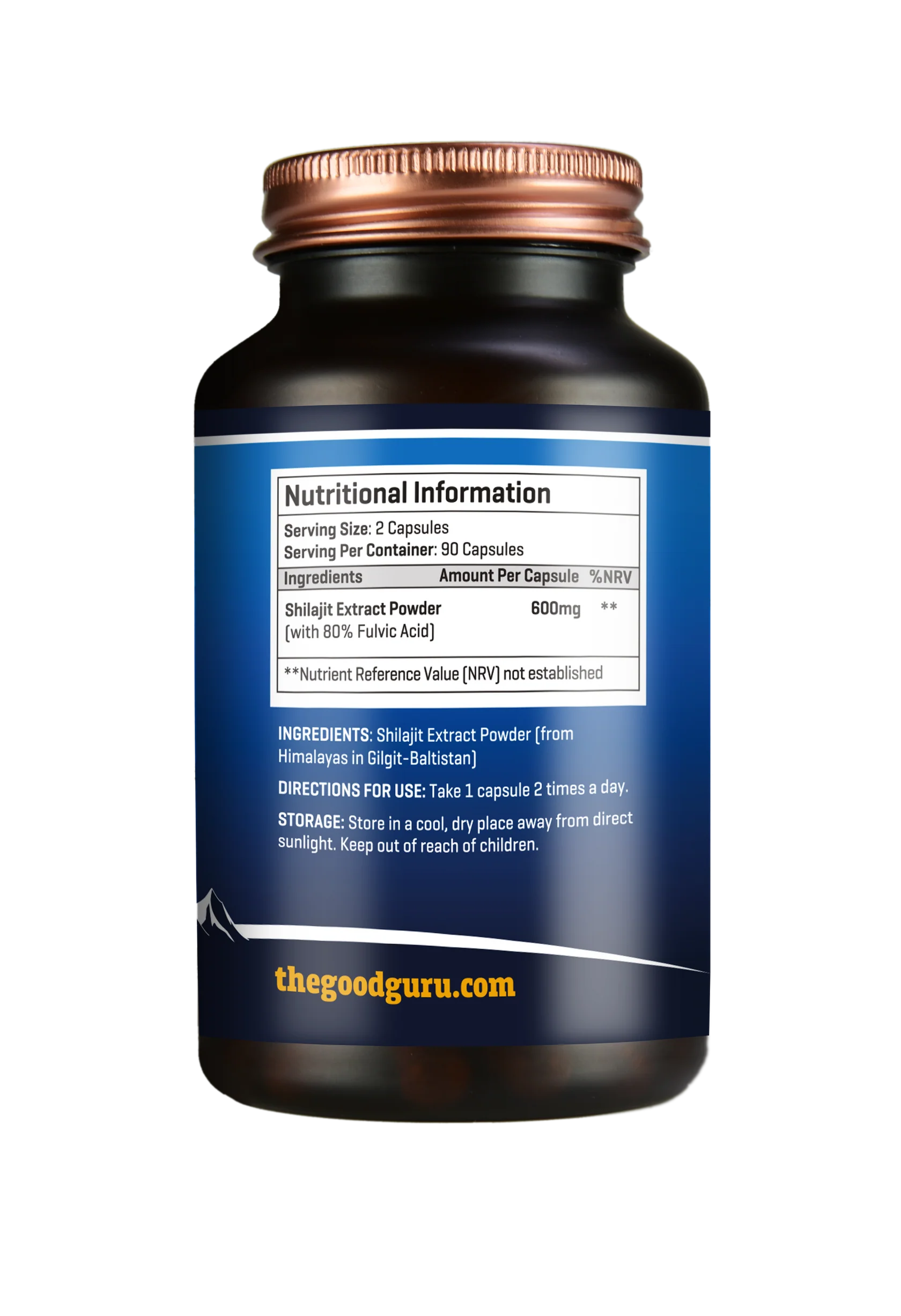 Boost your overall health and well-being with The Good Guru's Pearl Shilajit Extract Powder. Each 600 mg capsule contains high-quality Shilajit, a natural ingredient known for its potent health benefits. Experience the power of this ancient herbal remedy in a convenient and easy-to-take form